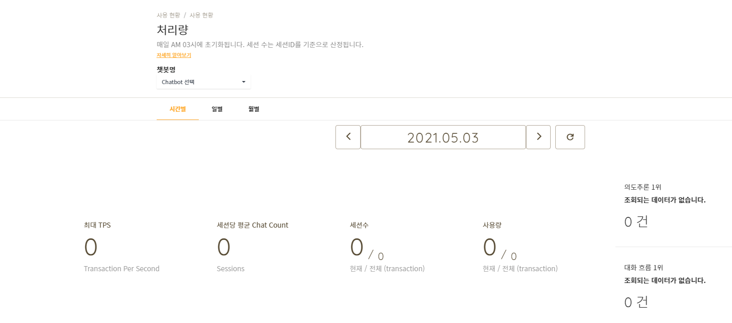 사용 현황 탭에서 사용량에 대한 전반적인 이용량을 체크할 수 있습니다.
