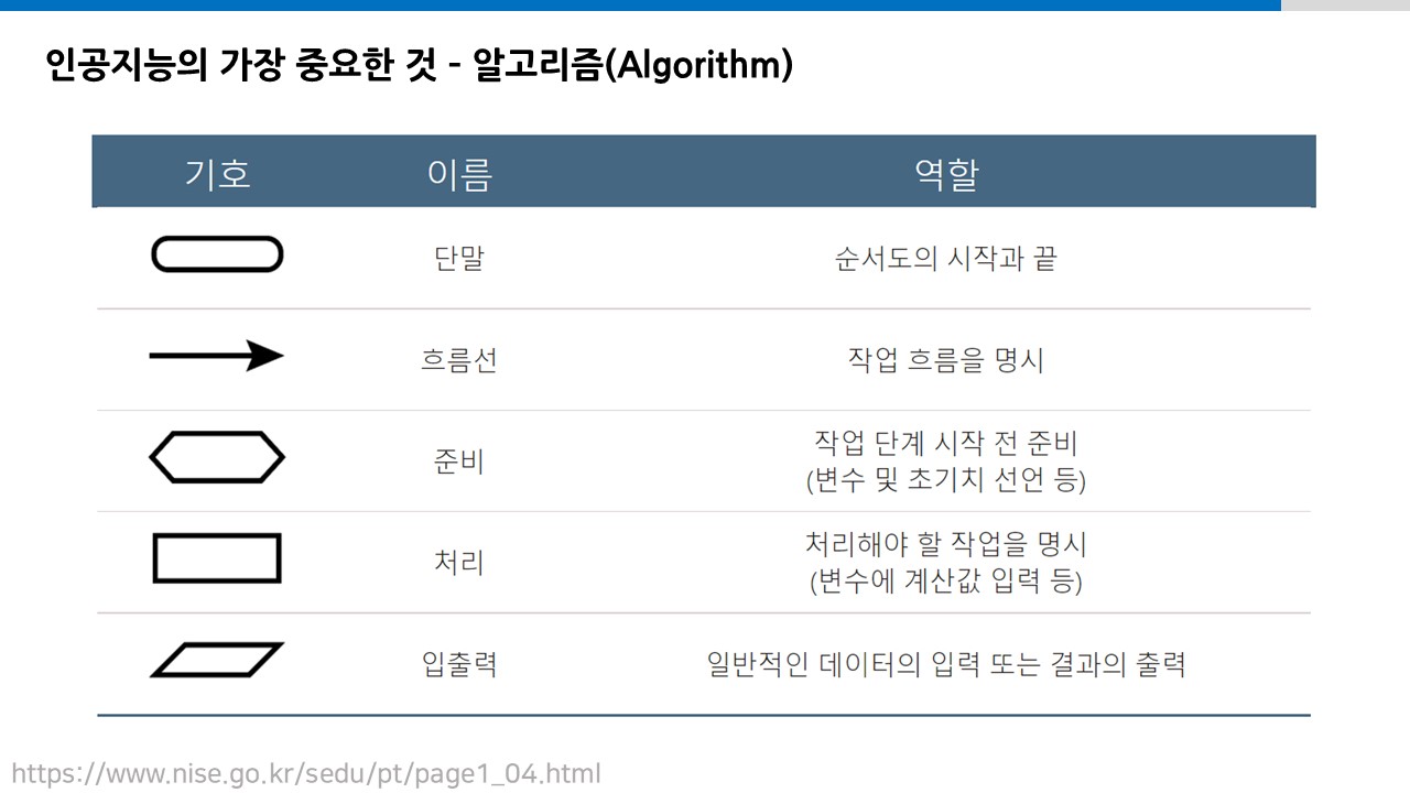 그래서 다른 방식으로 표현한 것이 순서도 표현 알고리즘입니다.