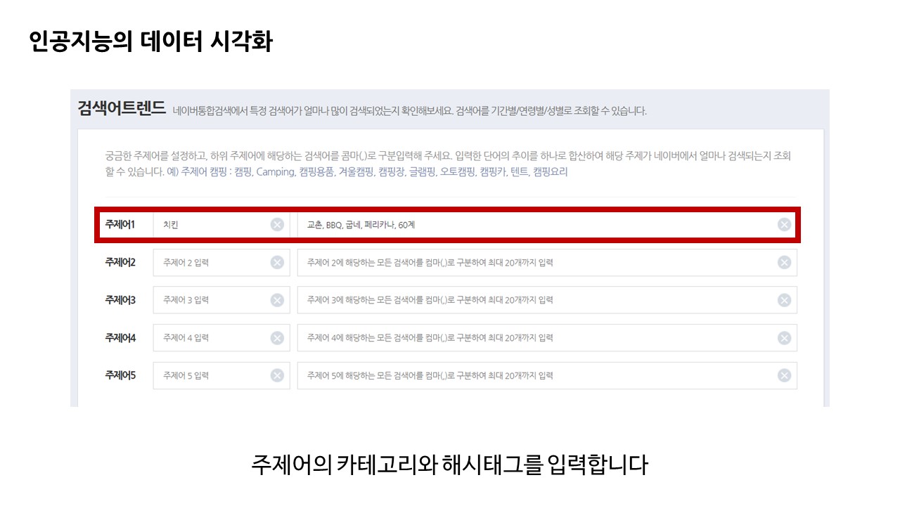 원하는 주제의 데이터를 찾기 위해 주제어를 입력하고 세부 검색어까지 입력합니다.