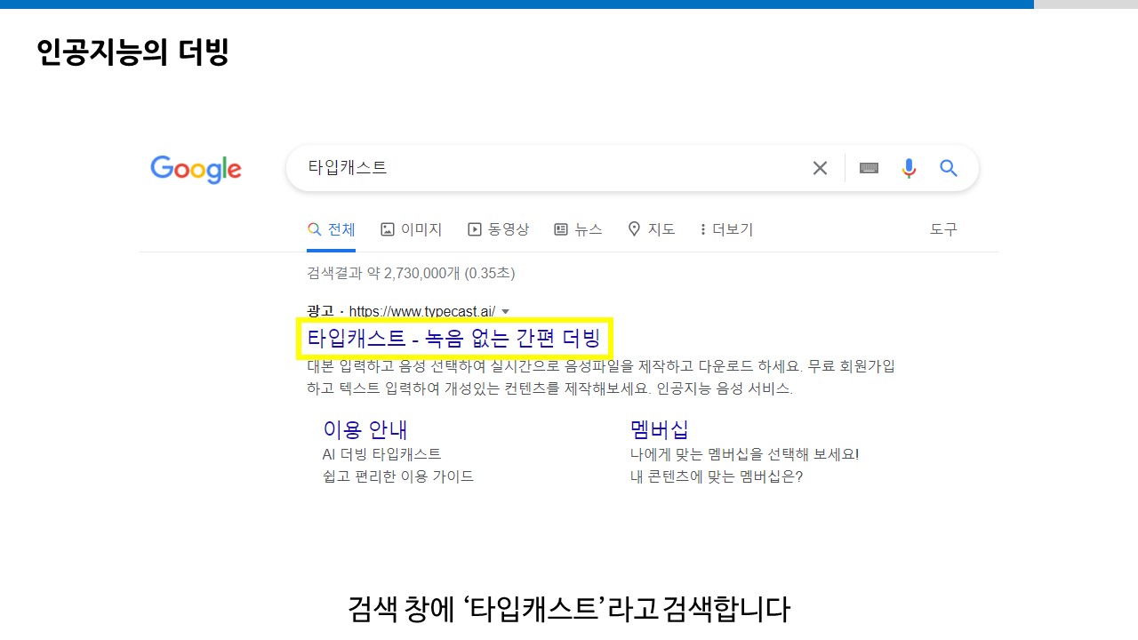 녹음 없는 간편 더빙으로 '타입캐스트'를 활용할 수 있습니다.