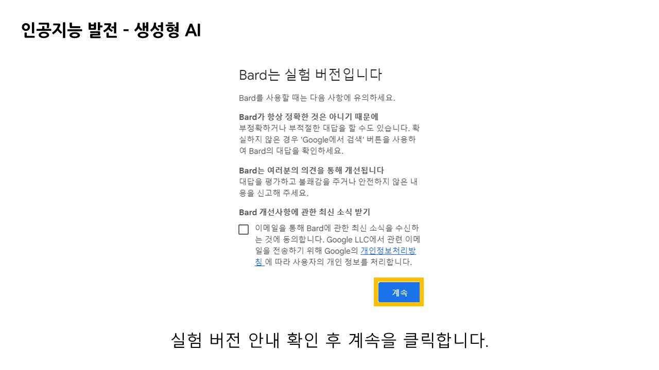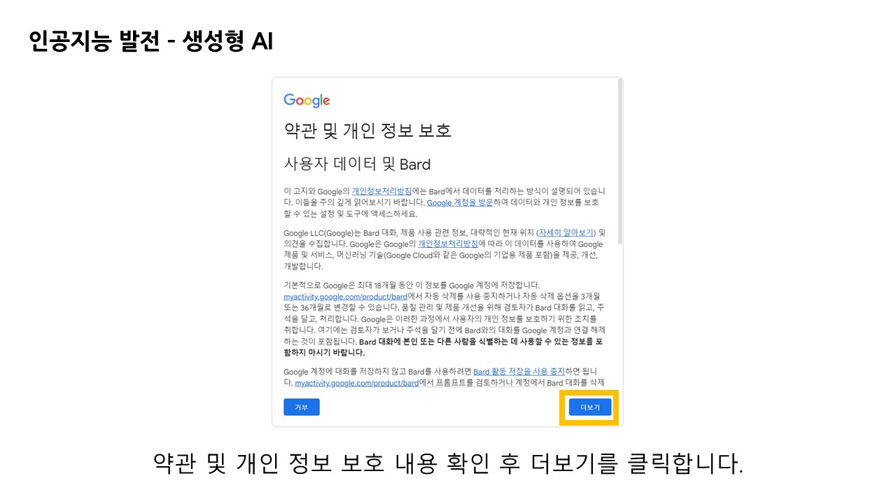 구글 바드는 입력한 정보와 위치 정보를 활용하여 답변에 활용합니다. 그에 따른 개인 정보 체크를 진행합니다.