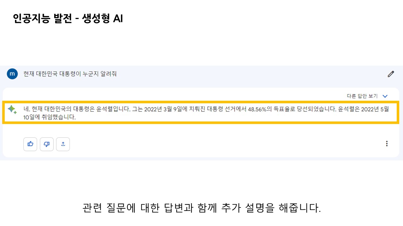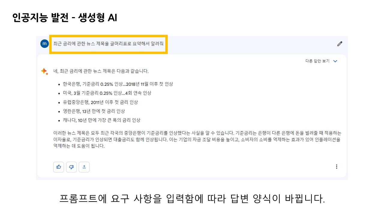 앞서 말씀드린 것처럼 생성형 AI의 궁극적인 목적과 활용 이유에 대해서는 공통적인 목적을 가질 거라 생각됩니다.