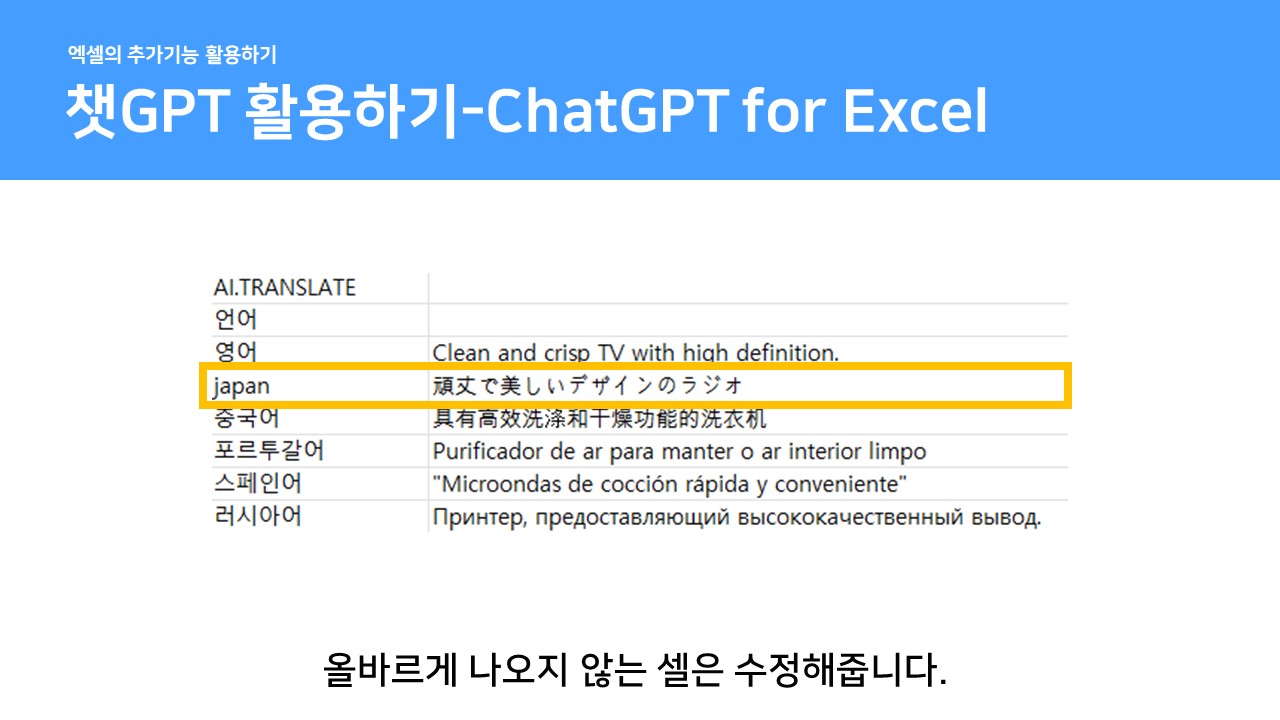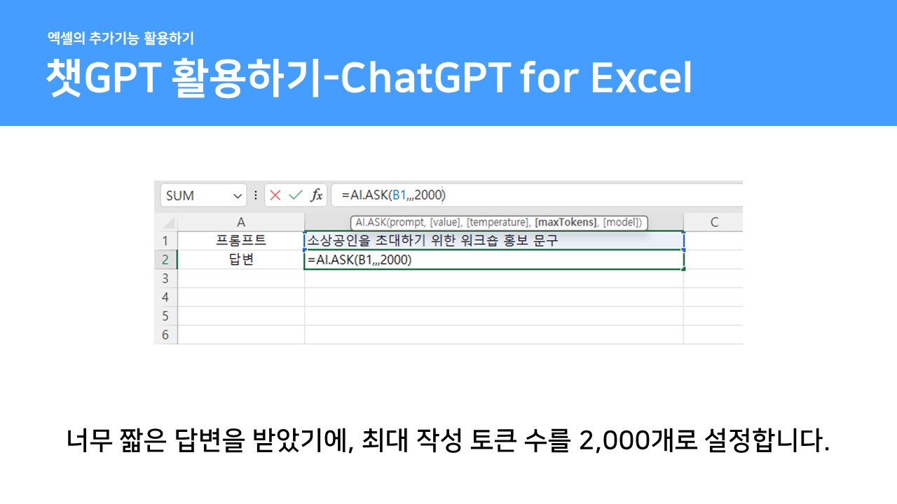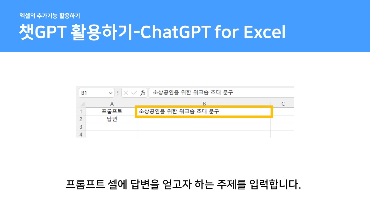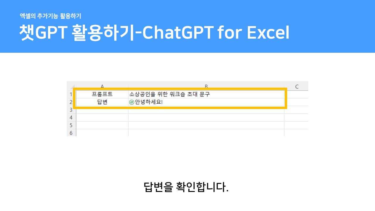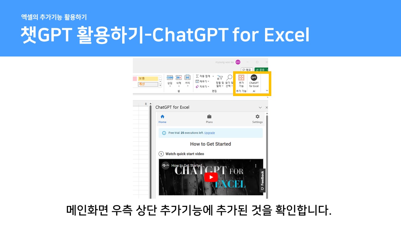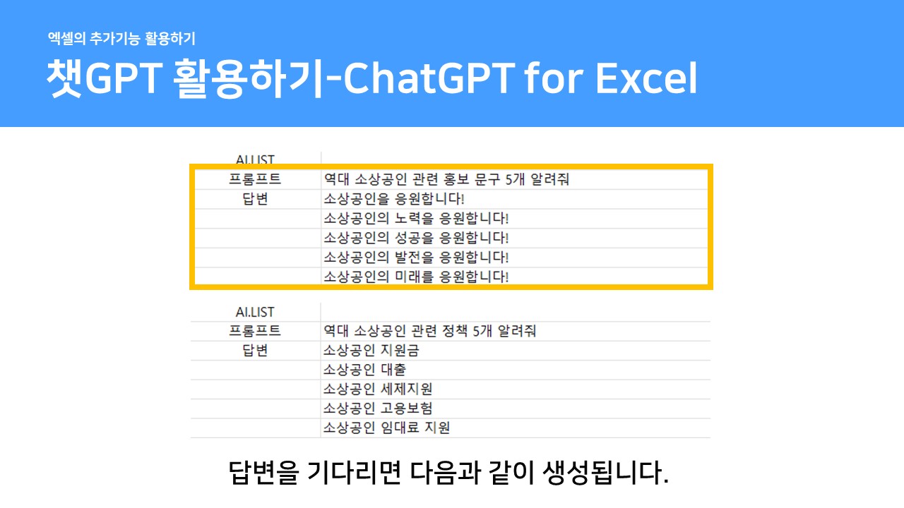 물론 엑셀 자체 기능은 아니기 때문에 모든 기능을 사용할 수는 없지만 챗GPT만의 장점을 활용하기에는 충분한데요.