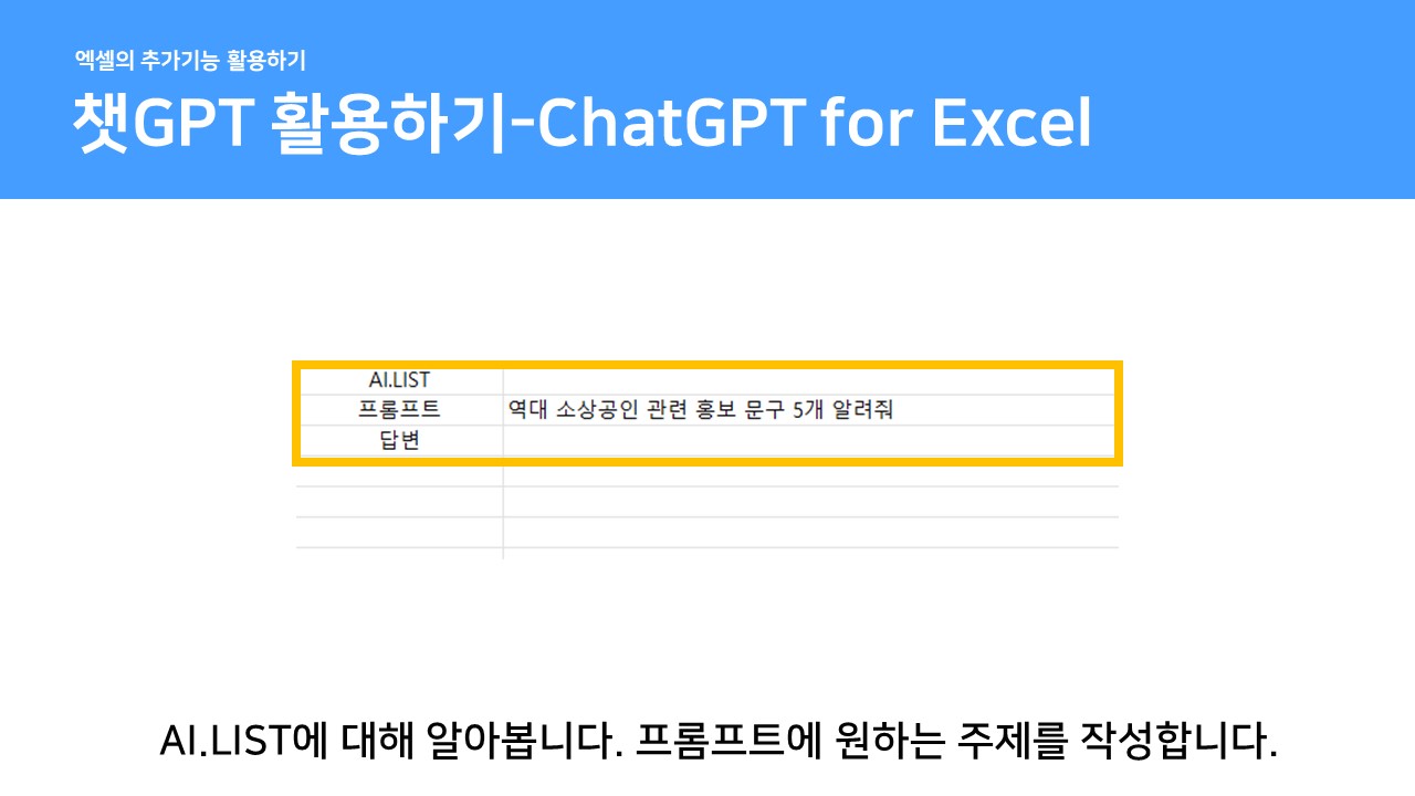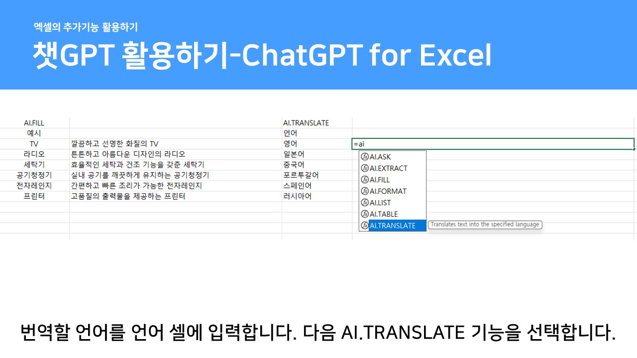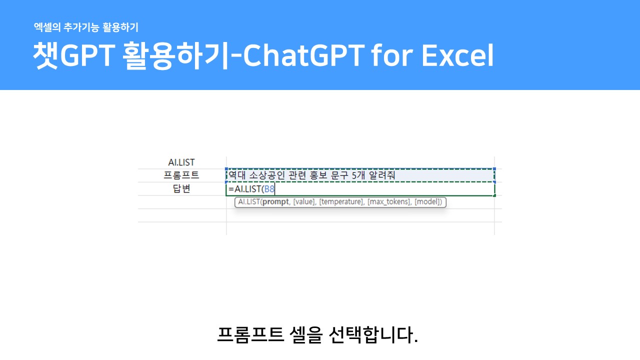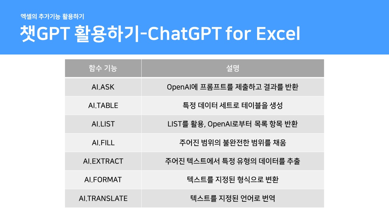 지금 당장 엑셀에 활용하지 않더라도 앞으로 챗GPT를 비롯한 많은 인공지능 프로그램이 자연스럽게 우리의 생활에 밀접하게 들어올 것으로 예상이 됩니다. 중요한 것은 이러한 기능을 어떻게 잘 사용하는지에 달려있습니다.