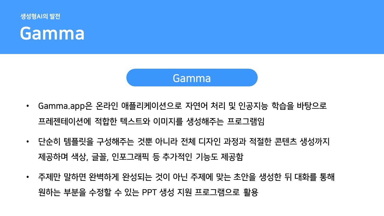 이번 시간에는 PPT를 자동으로 생성해주는 생성형AI에 대해 알아보겠습니다.
