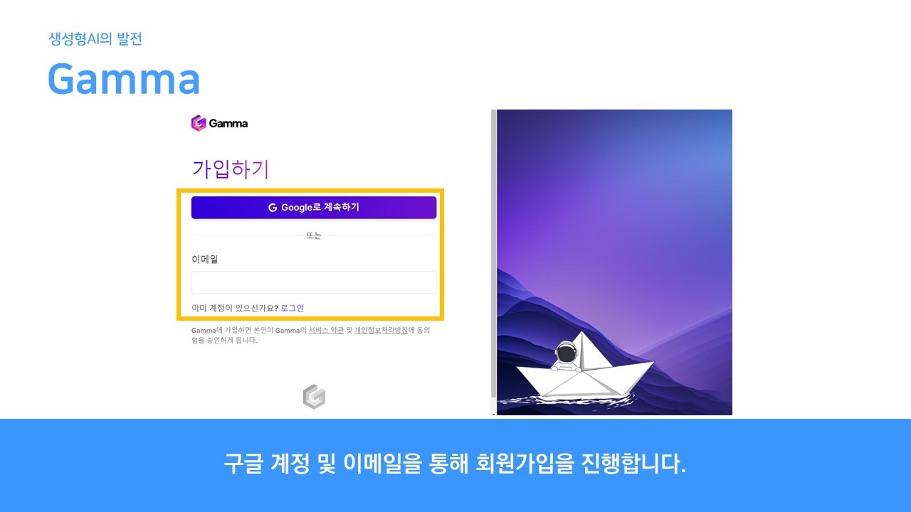 요즘 생성형 AI 프로그램을 사용할 때 대부분 구글 계정 연동 또는 이메일이거나, 구글 계정으로만 연동하게끔 한 사이트가 많습니다. 따라서 구글 계정을 만드는 것부터 인공지능 서비스를 사용하는 준비 단계일 듯 합니다.