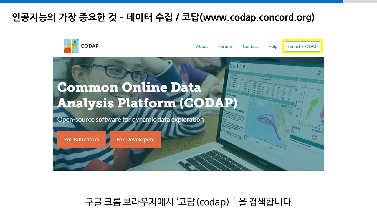 안녕하세요 미니멀헬퍼입니다. 오늘은 인공지능 공부에 있어서 도움을 줄 수 있는 사이트를 알려드리려고 합니다. 인공지능에서 가장 중요한 것은 바로 데이터죠. 다음으로는 이런 데이터들 속에 내포되어 있는 의미를 통찰력 있게 찾는 것이 중요합니다. 그 과정에서 데이터 시각화 과정을 거치게 되는데요. 적은 양의 데이터라면 처음부터 끝까지 쉽게 볼 수 있고 한 눈에 특정한 패턴이나 최대값, 최소값 등을 알 수 있지만, 많은 양의 데이터에서 유의미한 결과를 유추하는 것이 쉽지는 않습니다. 이렇게 데이터를 다루기 위해서는 여러 프로그램을 활용하게 되는데, 오늘 설명드릴 코답(codap)은 무료로 웹 페이지 상에서 쉽게 데이터를 분석할 수 있도록 도와주는 사이트입니다. 먼저 크롬 브라우저에서 코답을 검색합니다. 새 문..